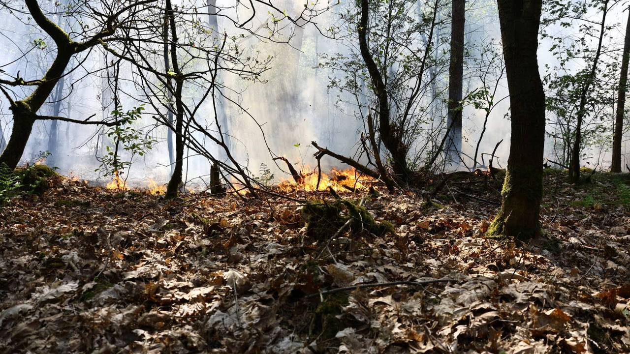 Brandweer is druk bezig met bosbrand in Overloon