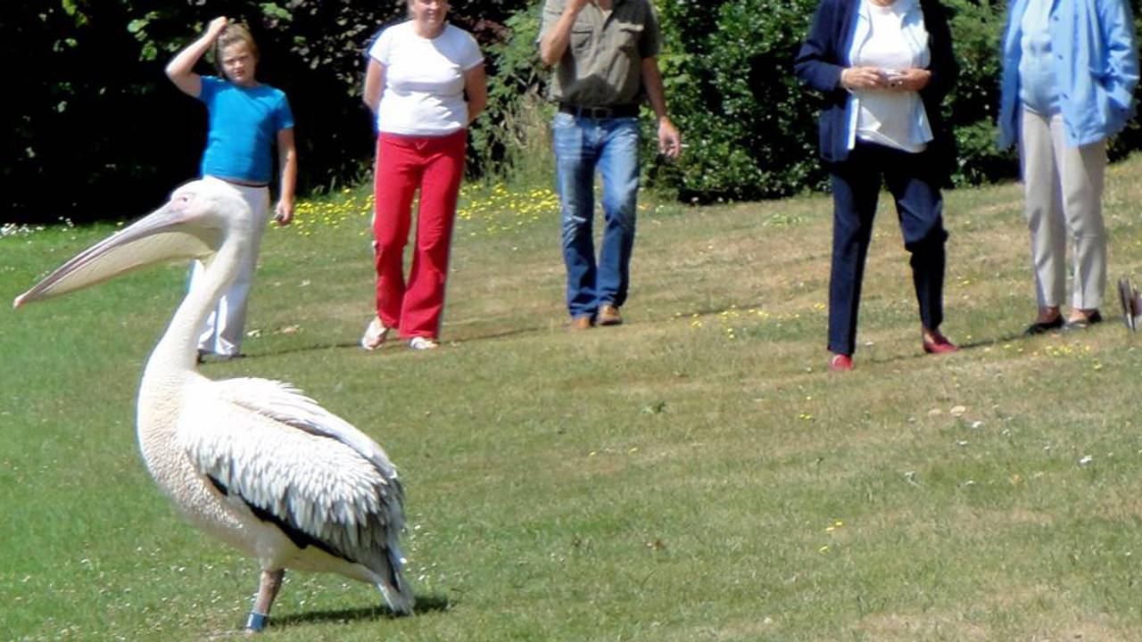De pelikanen heten Roderick, Blauwerick en Groenerick. Ze doen nog maar sinds kort mee aan de roofvogelshow, maar zijn al wel getraind.