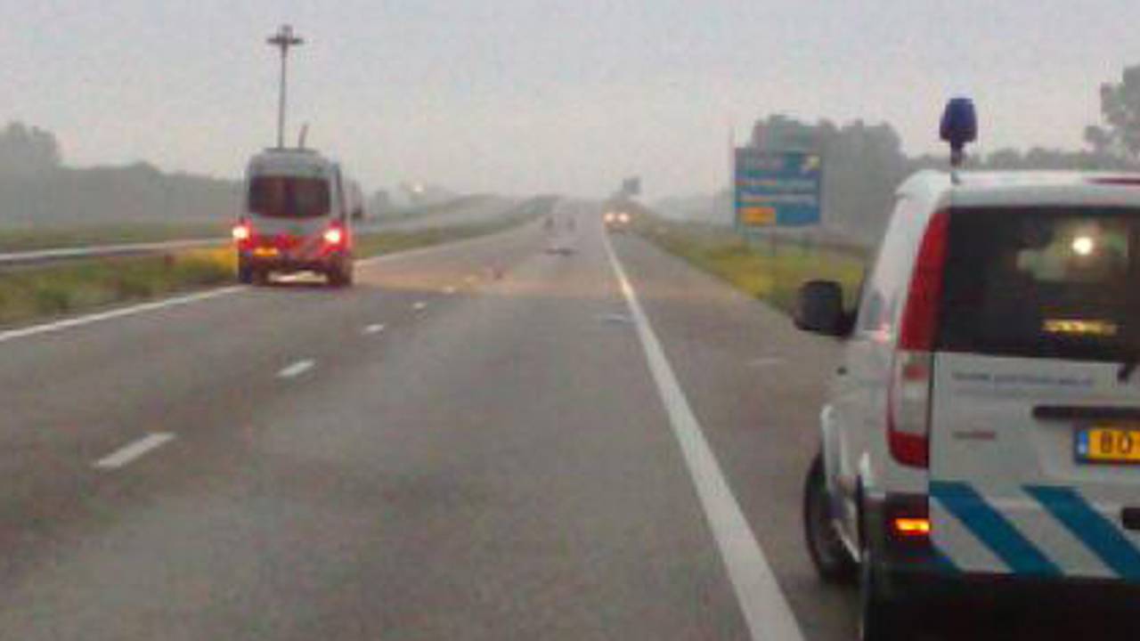 Het slachtoffer van zaterdagnacht werd rond tien over vijf aangereden door een 52-jarige automobilist uit Tilburg die in de richting van Waalwijk reed. De politie denkt dat er nog een tweede automobilist was die iets gemerkt heeft, maar die is doorgereden. Na de klap werden de hulpdiensten gewaarschuwd en die zetten de snelweg af. De ooggetuige werd opgevangen.