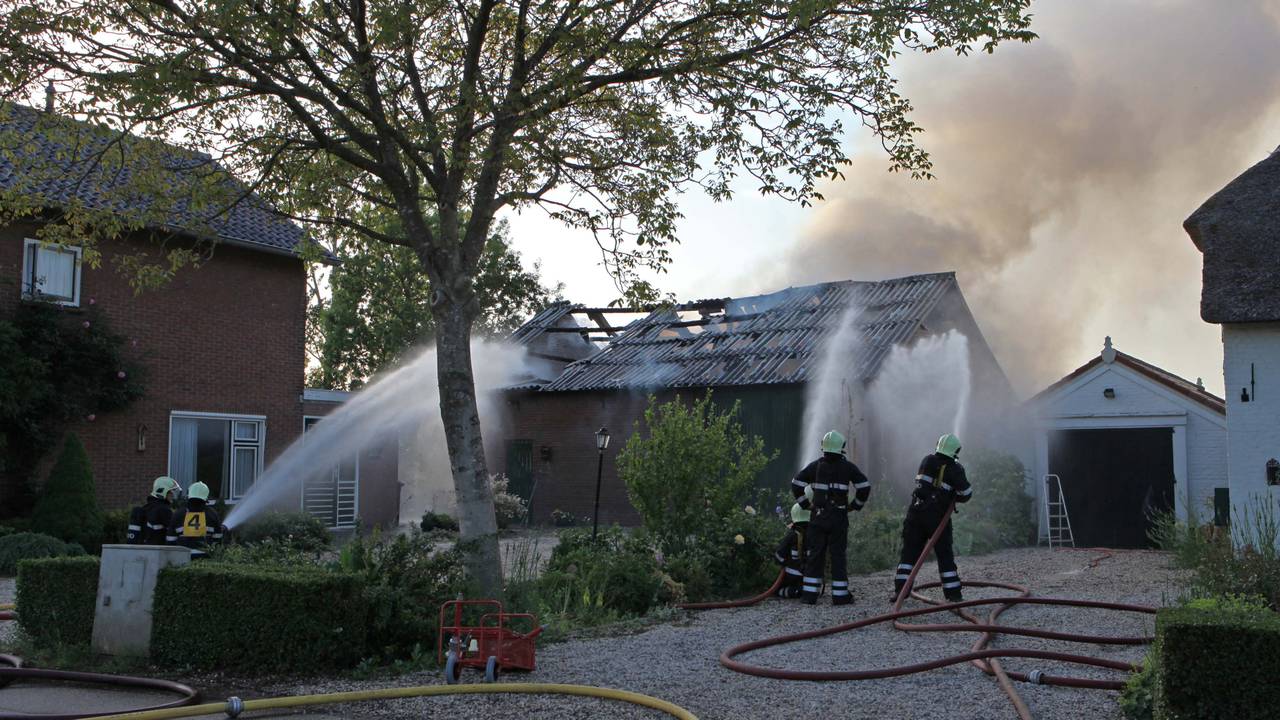 Door de brand stortte het dak en een deel van de muur van de schuur in. In de schuur stonden een auto en een crossauto. De brandweer kon niet voorkomen dat die verloren gingen.