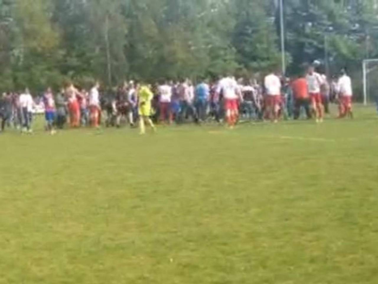 Massale knokpartij tussen Bredase amateurclubs Advendo en Barça [VIDEO]11 mei 2015De spelers van de Bredase voetbalclub Advendo moesten zondag het veld af rennen, omdat er een horde agressieve Barça-supporters achter hen aan kwam. Dat meldt BN DeStem. Ze hadden net met succes gespeeld om de periodetitel in de vierde klasse D. Na de wedstrijd renden zeker honderd supporters van Barça het veld op.