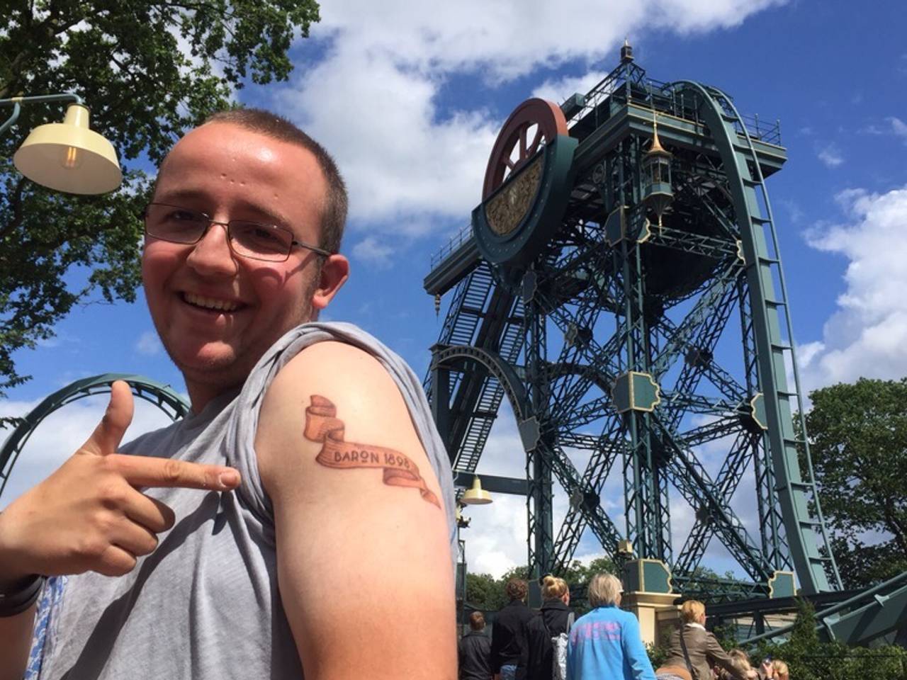 VIDEOMalle Jokie: Efteling-fan Rick uit Roosendaal laat logo Baron 1898 op zijn arm tatoeëren29 juli 2015De nieuwe Efteling-achtbaan Baron 1898 bevalt sommige mensen zo goed dat ze het logo op hun arm laten tatoeëren. De Rotterdamse tatoeagesalon Tattoo Bob kreeg dinsdag dit opmerkelijke verzoek van Rick uit Roosendaal.