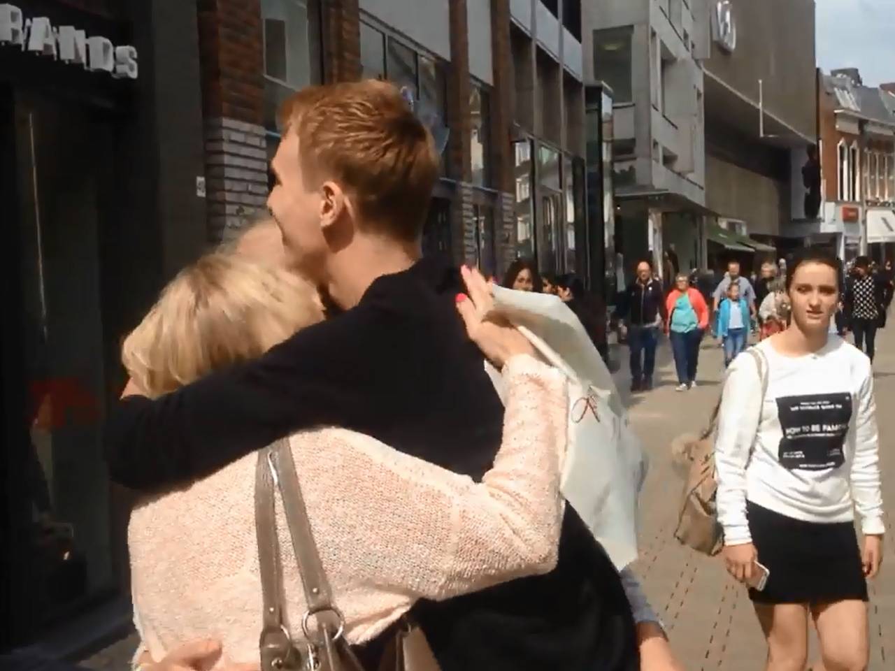 Gratis knuffels en rugmassages voor Tilburgers, 'geven is beter dan nemen'Een gratis kopje koffie, rugmassage of knuffel, wie wil dat nou niet? Daarom gingen de 25-jarige Jeroen Dekkers en de 26-jarige Marloes van der Sterre in Tilburg de straat op om de mensen te verrassen met hun hulpdiensten. Want 'geven is beter dan nemen'.