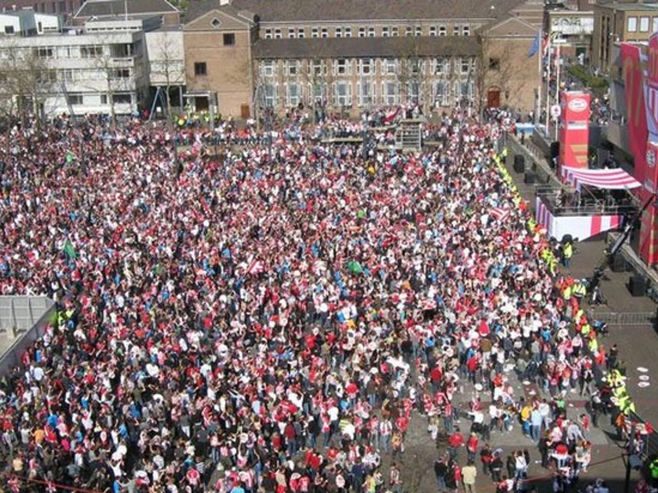 Actie voor grote beeldschermen in binnenstad Eindhoven bij kampioenswedstrijd PSV: ruim 2200 likes13 april 2015In het centrum van Eindhoven moet zaterdag de kampioenswedstrijd van PSV tegen sc Heerenveen op grote beeldschermen te zien zijn. Daar pleiten de plaatselijke politiek en supporters van de Eindhovense club voor. Op Facebook is een petitie begonnen om de tegenstribbelende gemeente alsnog te overtuigen. Ruim 2200 fans steunen de actie door middel van een ‘like’.