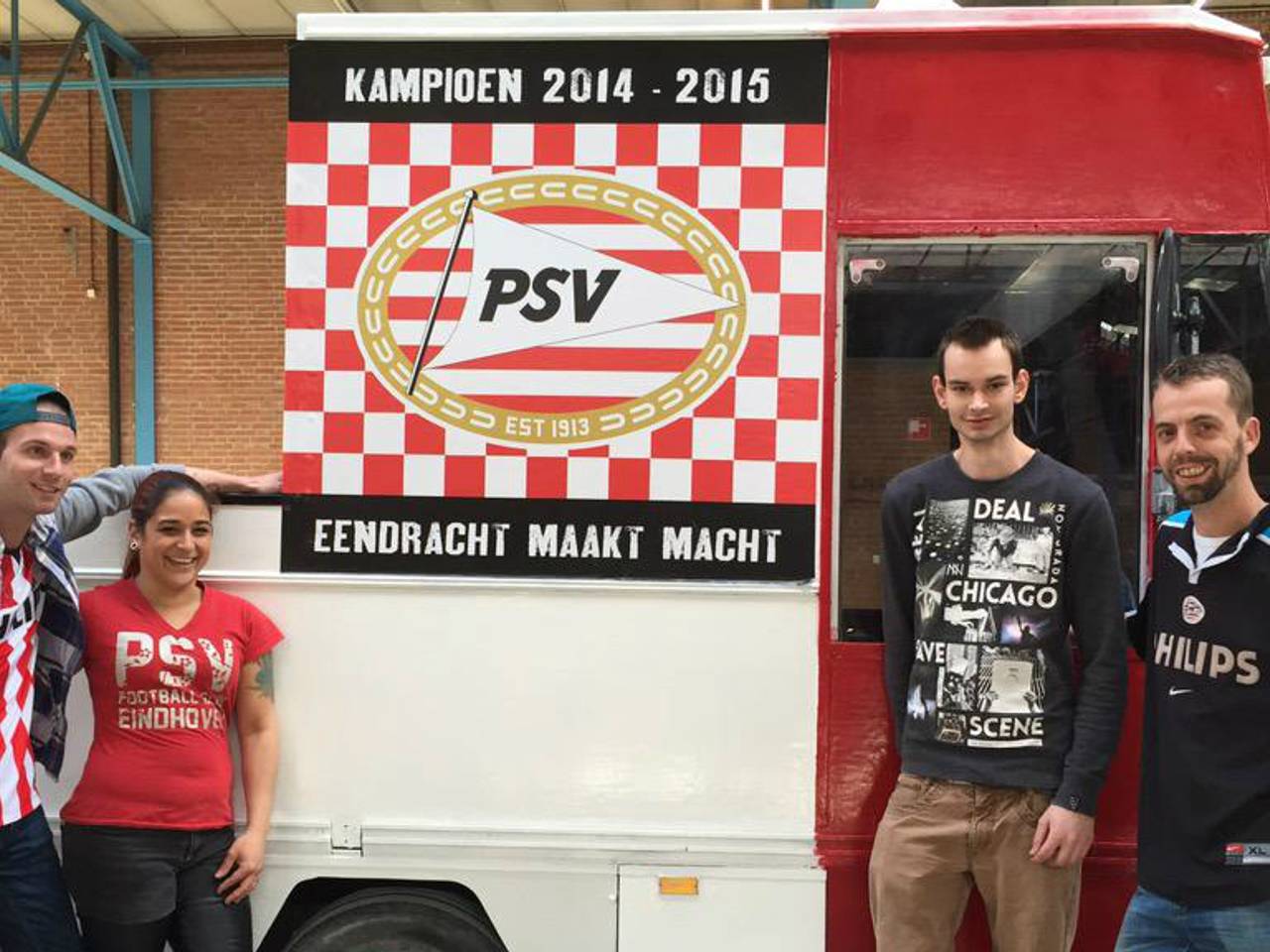 Platte kar voor PSV-fans uit Best krijgt plek midden in Eindhoven: ‘We hebben gewoon vip-plaatsen’18 april 2015Zo’n veertig fanatieke supporters uit Best bouwden de afgelopen periode aan een eigen platte kar om het kampioenschap van PSV te vieren. En nu is er goed nieuws, want door de inzet van algemeen directeur Toon Gerbrands van PSV en politiecommissaris Frank Fuchs mag de platte kar zondag op de Keizersgracht staan. Op de route, midden in de stad. “Dat kan alleen maar in Brabant.”
