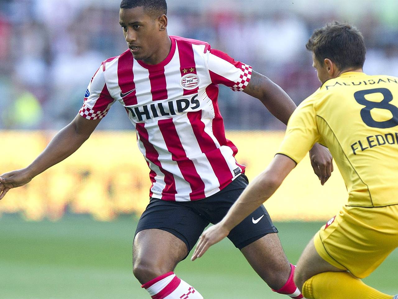 Memphis Depay schiet PSV langs Sjachtjor Soligorsk en naar groepsfase Europa League28 augustus 2014PSV heeft donderdagavond in een saaie wedstrijd met 0-2 van Sjachtjor Soligorsk gewonnen. Met twee prachtige doelpunten in de laatste vijf minuten was Memphis Depay de grote man. Door de zege in Wit-Rusland plaatst PSV zich voor de groepsfase van de Europa League.