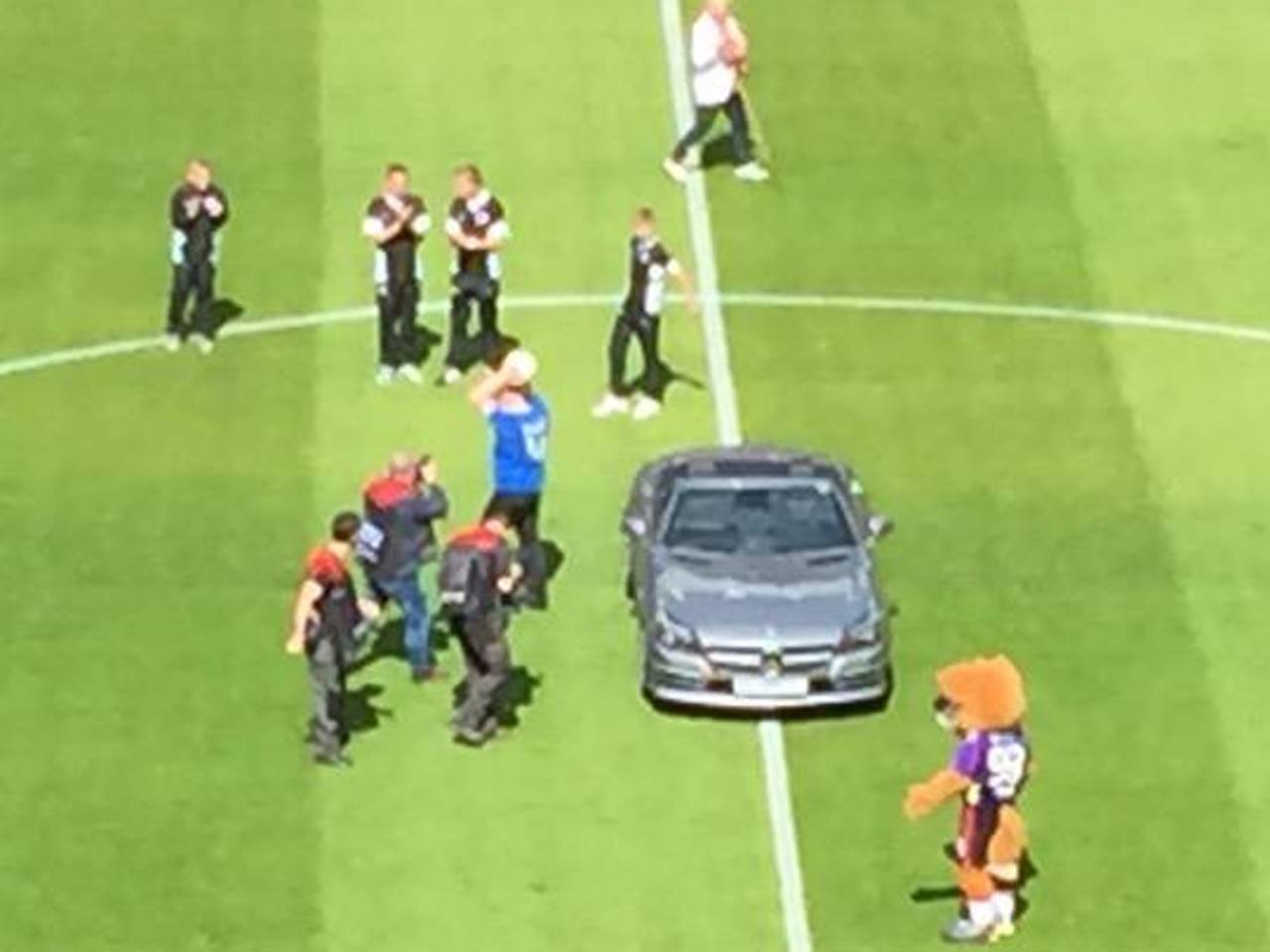 PSV-fan schiet van grote afstand bal in cabrio en mag de auto meenemen: 'Wat een held!' [VIDEO]11 mei 2015PSV-fan John zal de wedstrijd PSV - Heracles Almelo niet snel meer vergeten. Hij hield er namelijk een Mercedes SLK aan over voor een jaar. In de rust mocht hij namelijk vanaf de zestien proberen de bal in de op de middenstip geparkeerde cabrio te schieten en dat lukte. Supporters op de tribunes in het Philips Stadion zagen het gebeurden en filmden het. "Wat een held, wat een held!'