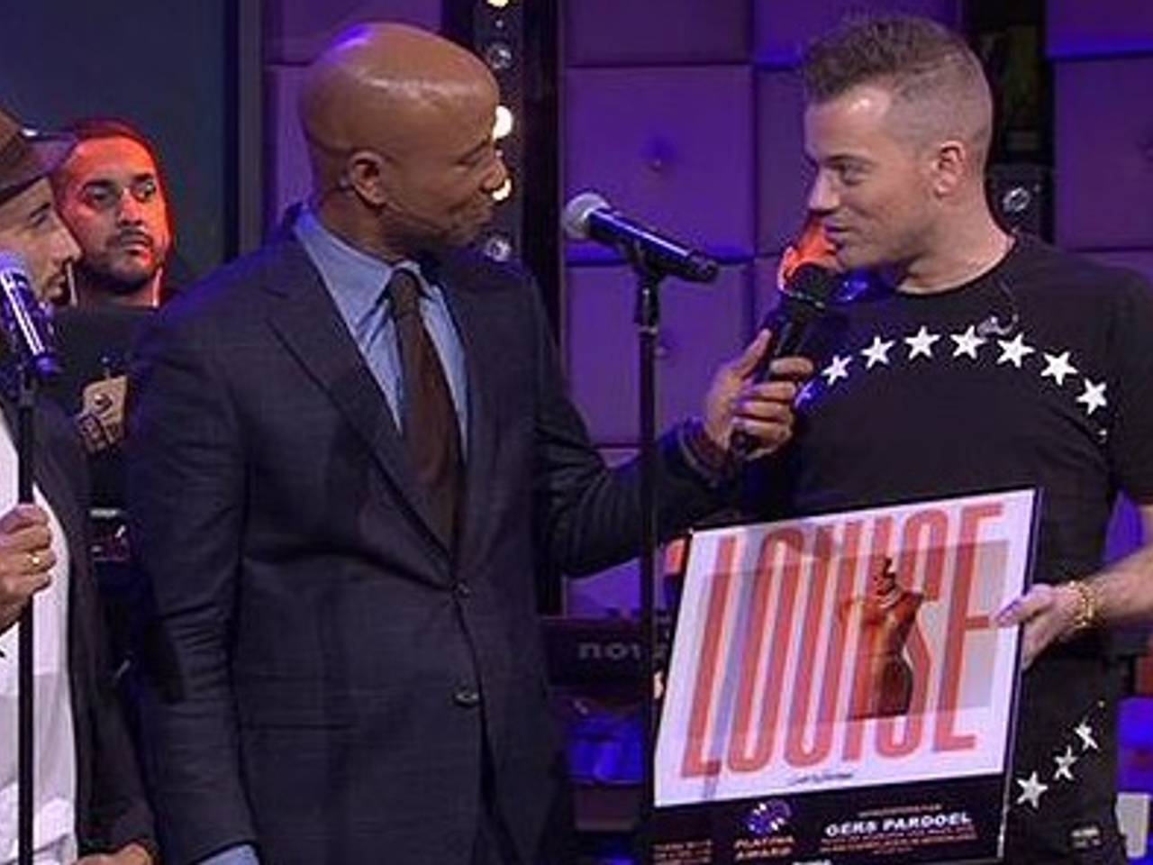 Tilburgse rapper Gers Pardoel krijgt platina plaat in RTL Late Night voor single ‘Louise’22 oktober 2014De Tilburgse rapper Gers Pardoel heeft dinsdagavond een platina plaat ontvangen uit handen van RTL Late Night-presentator Humberto Tan. Zijn succesvolle single 'Louise' is meer dan 30.000 keer over de toonbank gegaan.