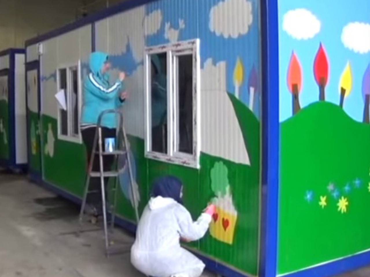 Kleur in grauw vluchtelingenkamp Syrië, kunstenares Esther van der Ham uit Breda wil hoop brengen21 januari 2015Kunstenares Esther van der Ham uit Breda heeft onlangs vier containers beschilderd in een Syrisch vluchtelingenkamp aan de grens met Turkije. Die containers worden daar gebruikt als school. Met de schilderingen hoopt de kunstenares dat er wat kleur komt in het grauwe en troosteloze vluchtelingenkamp.