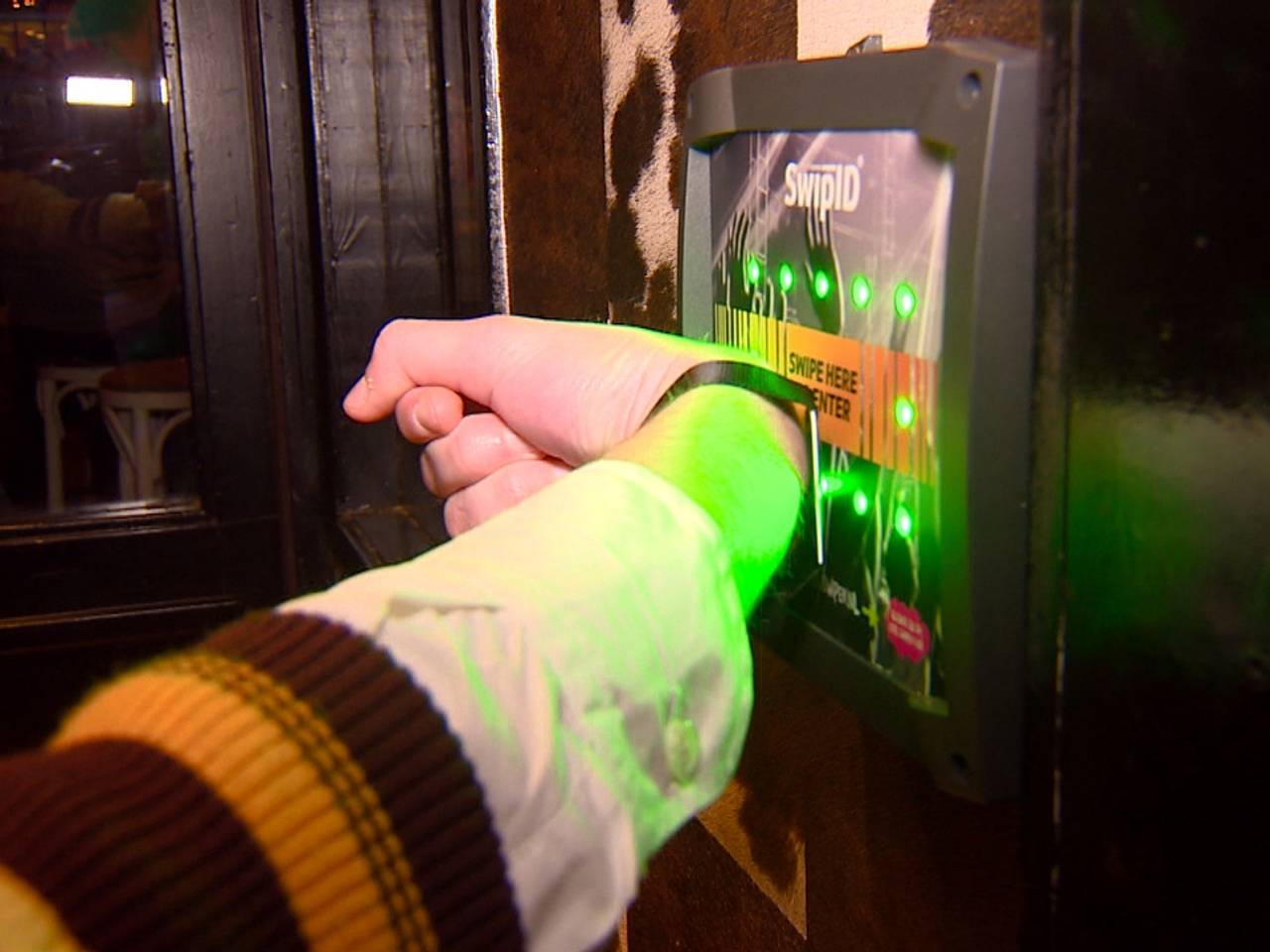 VIDEOPolsbandjes voor stappers die alcohol willen drinken op Stratumseind in Eindhoven16 mei 2014In Eindhoven is donderdagavond een nieuwe systeem gepresenteerd waarmee stappers makkelijker kunnen laten zien dat ze achttien jaar of ouder zijn. Door de verhoging van de alcoholleeftijd wordt in uitgaansgebebieden strenger gecontroleerd op identiteitskaarten. Het gevolg: ellenlange rijen en irritatie bij de stappers. De SwipID moet dit stoppen.