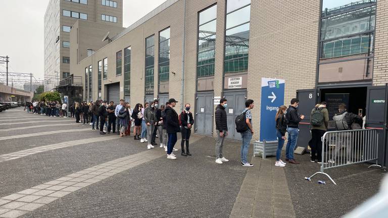 Topdrukte bij teststraat door NAC-finale, wachttijd ruim een uurDe finalewedstrijd NAC-NEC in de play-offs zorgt in Breda voor een enorme drukte bij de coronaspoedteststraat voor evenementen. Vanaf zaterdagochtend vroeg staat er een lange rij wachtenden en loopt de wachttijd soms op tot een uur. "Je moet er iets voor over hebben", zegt een supporter die denkt dat NAC zondag promoveert. VIDEO