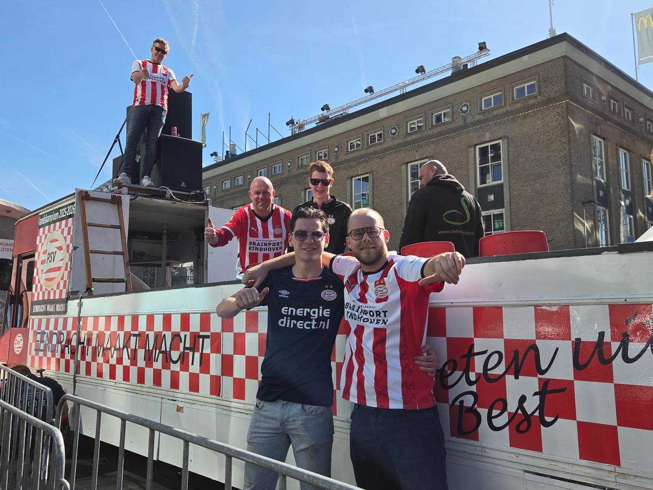 VIDEODeze PSV-fans maken er al vroeg een feestje van in EindhovendinsdagHet is al de hele ochtend druk met PSV-fans in het centrum van Eindhoven. Om elf uur gingen de poorten van het Stadhuisplein open en konden de eerste supporters hun plekje zoeken voor de huldiging. En de sfeer zit er direct goed in.