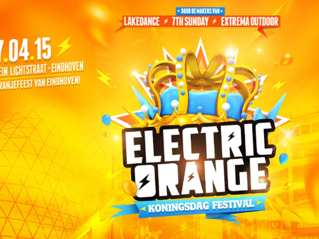 Electric Orange tijdens Koningsdag in Eindhoven met Nicky Romero, Sander van Doorn& Yellow ClawTijdens Koningsdag staat Eindhoven in het teken van het Electric Orange Festival. Onder meer Nicky Romero, Sander van Doorn, FeestDJRuud, La Fuente, Quintino en Yellow Claw zullen 27 april hun opwachting maken in het centrum van Eindhoven.